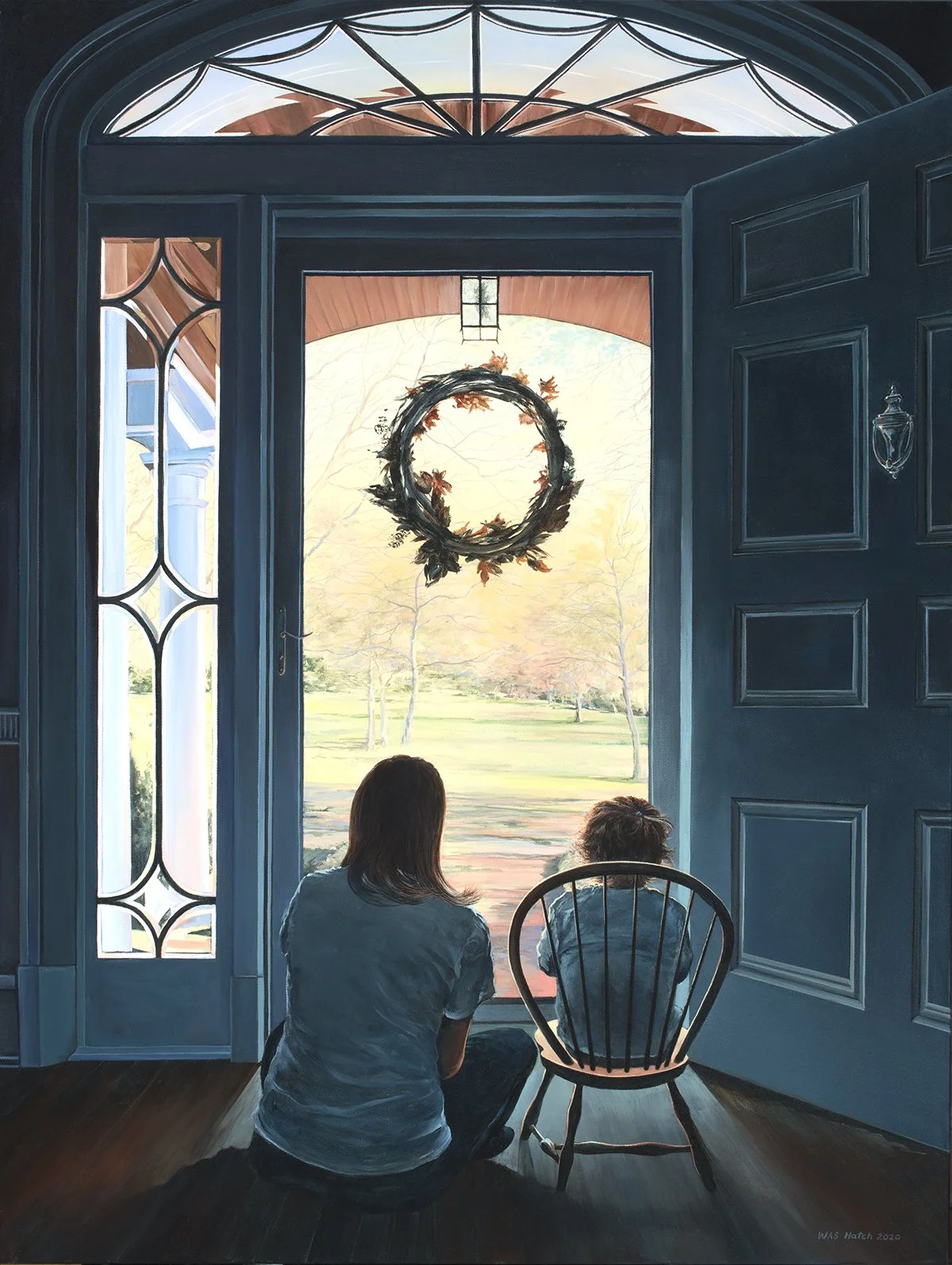 As a recent admirer of Hatch’s work, I was struck by the variety of subject matter she has explored through her unique artistic practice. Although the selection of work for Close to Home presents Hatch’s most recent body of work, it additionally attempts to showcase this variety. While in conversation with Hatch, the fundamental inspirations for her work became apparent. Scenes of her family such as Meredith & Charlotte and Erica provide glimpses into the intimate moments of her life, while Night Mystery and Blue Lagoon express her inquisitive examinations of scenery and space. Hatch seamlessly traverses between moments of fascination with the outside world and personal memories as a visual author, documenting her artistic curiosities while examining herself within those larger moments.