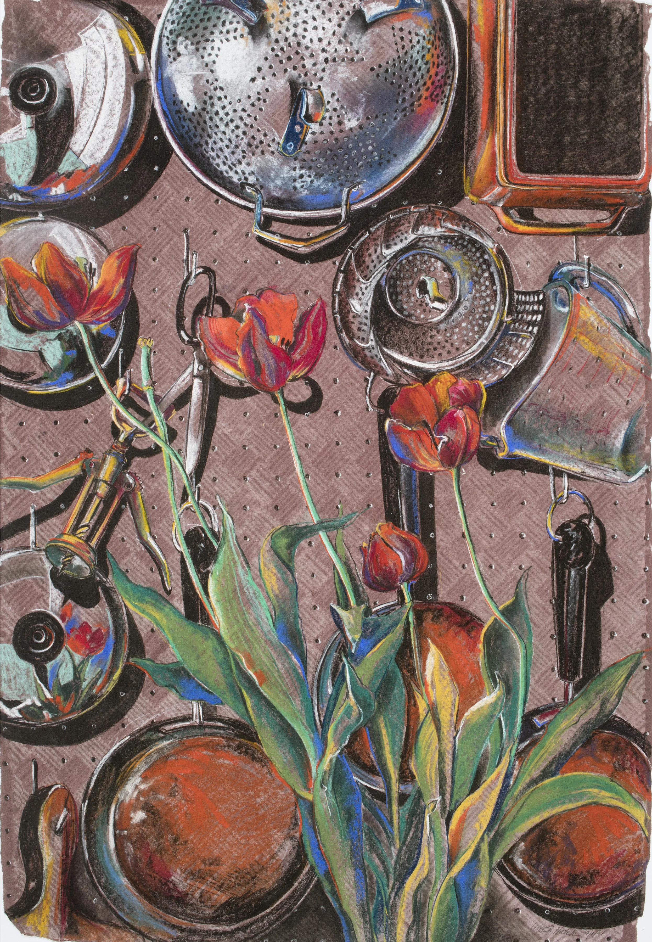 Pegboard Tulips | 1981 | Pastel on Japanese Rice Paper | 39 x 26 inches